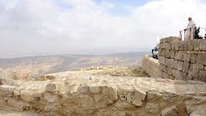 Benedetto XVI sul Monte Nebo durante la visita in Terra Santa del 2009 (Reuters)