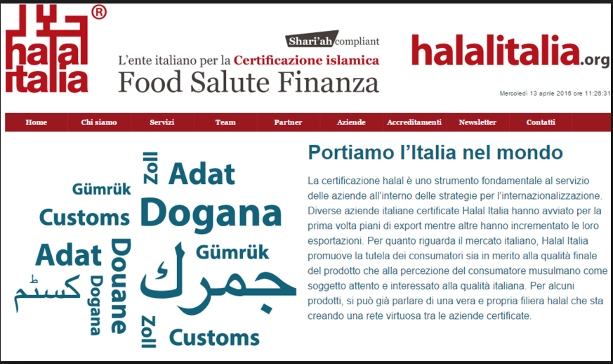 «Noi diciamo che crisi da una parte e crescita dell’halal dall’altra, sono collegate “provvidenzialmente”. Infatti, di anno in anno, cresce il numero delle aziende certificate (+40% nel 2011 rispetto al 2010; +50% nel 2012 rispetto all’anno precedente). A livello internazionale, la crescita è costante da una decina di anni (dal 10 al 15% annui) e l’Italia ha potenzialità maggiori. Lo sviluppo di questa opportunità in maniera professionale e con rigore religioso, è andato insieme a un momento di contrazione del mercato interno, per cui le aziende italiane si sono maggiormente concentrate sull’export, scoprendo che un quarto della popolazione mondiale è musulmana e mangia con determinate cautele. La certificazione halal unisce all’attenzione scrupolosa dei precetti religiosi, il rilancio del made in Italy nel mondo, e le due componenti insieme determinano un grande successo aziendale (la stragrande maggioranza delle aziende che si affaccia alla certificazione halal, lo fa a partire da un’esigenza di internazionalizzazione, o comunque di mercati esteri, e per alcuni Paesi tale certificazione rappresenta un requisito doganale imprescindibile, ndr). Ma la cosa vale anche per il mercato nazionale. L’halal non è un prodotto “etnico”, come molti dicono, anzi, è un prodotto tipicamente italiano, parliamo di grana padano, di bresaola della Valtellina, e così via. Più di un terzo di chi compra halal non è musulmano, lo compra perché lo percepisce di qualità superiore (il 62% di chi compra cibi halal lo fa per la qualità, il 51% perché ritiene tali cibi più salutari, il 34% perché li ritiene più sicuri, ndr)».