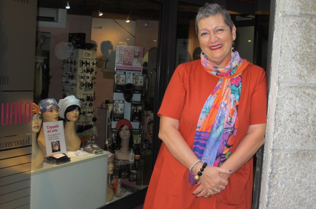 «You were our first ray of light», where the light could be that of the sequins of a headegear, in reality it is that of a smile. The place is a gray waiting room for a department for cancer patients, waiting for the daily session of chemotherapy. The faces are “cancer”. A radiant woman, well dressed and made up, enters with a sparkling beret on her head, which tears off that grayness. «I liked wearing it, but I was hesitant, because getting “saucy” in an environment where tha faces are marked by the battle between life and death, seemed to me indelicate», says Maria Teresa Ferrari, 52 years, from Verona, professional communication, entered in her “second life” after an surgery, on 5 August 2015, for a complex mammary carcinoma, and the consequent chemotherapies and radiotherapies. «They were my angels – the nurses and my sick companions – who asked me to continue to be their “ray of light”. So I realized that a smile and a sparkling beret on the head can make the difference». So, what was born as a good personal purpose, «I had decided lying on the hospital’s bed that I would not let myself go», became the #LaCuraSonoIo project, or «hats, turbans, colored, of different shapes, very soft, with the inside in cotton or bamboo, hypoallergenic, and from the accessible costs, because during the illness, covering the head is not a whim», now on sale in some shops in Verona, but also within the IEO (European Oncological Institute of Milan, founded by Professor Umberto Veronesi) and in the spaces of The Vintage Project of the IEO-CCM Foundation, the first Charity Shop in Italy to support cancer research. «The headgear also represents something of symbolic, because the disease is seen by the naked head. But I do not want these hats to remain tied to the disease, they do not have to be something to get rid of as soon as the hair grows back, because they carry a message: there are the headgear of positive thoughts, that of bright ideas, the one who loves the smile, and the headgear of rebirth». The word rebirth for Maria Teresa is precious. «Evil wins with good – she says -. And the good is to design, distance the brain from the diseased side and bring it closer to the heart. Because together – heart and brain – can initiate rebirth. It means making beautiful also the woman who suffered an impairment. Love for life inhabits the heart and the heart never gets sick of cancer». A woman so ecletic, who has always dealt with culture, could not but face this challenge with creativity. Because «when negative thoughts assail you, you must be very creative to drive them away». The doctors saw this energy and they asked Maria Teresa to be witness. «Testimonial of myself and of alla women who live my situation, and they are so many. Mammary neoplasia affects one every six women, and breast cancer is still the third killer, after lugs and pancreas». In that room waiting for chemo, Maria Teresa writes, opens a Facebook page and post thoughts, reflections, suggestions. The likes rain, but also interactions, requests for advice, she discovers that there is a world that needs to express itself, to confront itself in pain, and also discovers so much solidarity. «What helped me greatly during the surgery was knowing that many prayed for me. Not just my religious friends, but also the social people, people I did not know directly. I had a very strong chain of prayers, which enveloped me in a hug of intimate serenity. And I have always posted my thoughts, because the heaven should be thanked for both good and bad things». The attitude of this woman towards her “unexpected guest”, as she calls it, has always been mild. «I never considered cancer aggressively, I considered it a gift, knowing right away that that I would fight it with love, because I did not want to live the disease with rancor, but with positivity. The day of the surgery represented for me the liberation, the watersheed between a first fact of anxieties, expectations, fears, and an after, which became care and concentration on me, to eradicate everything that the unexpected guest had disseminated in my body».