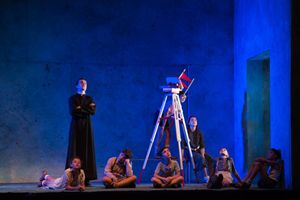 «E’ un grande piacere per me interpretare don Lorenzo Milani. Quando mi è stato proposto, la paura era di non riuscire a rendere la complessità del personaggio. Mi sono stati d’aiuto gli autori e i colleghi, tutti molto capaci. Io sono il capitano di una squadra, quindi ho una grande responsabilità, ma non gioco da solo». Racconta così la sua esperienza, l’attore Alex Cendron, che dal 20 al 26 luglio a San Miniato (Pisa), dà voce e cuore al prete di Barbiana, nella pièce “Vangelo secondo Lorenzo”, firmata da Leo Muscato e Laura Perini, e co-prodotta da Elsinor Centro di Produzione Teatrale, Teatro Metastasio, Arca Azzurra e Fondazione Istituto Dramma Popolare, nell’ambito della Festa del Teatro 2017. Lo spettacolo, in occasione del cinquantenario della morte di don Lorenzo, è parte di un ampio progetto celebrativo promosso dalla Regione Toscana. Per questa 71esima edizione la Festa del teatro ha cambiato location, trasferendosi dalla piazza del Duomo alla chiesa di San Francesco. Dopo che negli anni scorsi sono state attuate varie sperimentazioni di commistioni fra pubblico e attori, si è tornati alla classica situazione di platea e palcoscenico.