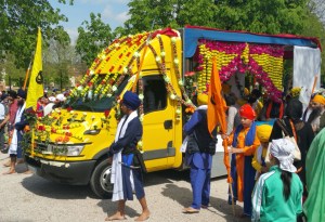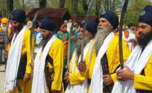 Il sikhismo è una religione monoteista nata in India nel XV secolo, basata sull’insegnamento di dieci guru che vissero tra il XV e il XVII secolo. I Sikh (in sanscrito, significa discepolo) vivono principalmente nel Punjab. Il Creatore onnipontente si manifesta attraverso il Creato, ed è raggiungibile con la preghiera e grazie all’aiuto di un guru, che è un illuminato. Oggi guru non ce ne sono più, però i loro insegnamenti sono racchiusi nel Libro Sacro (Sri Guru Granth Sahib ji), venerato dai Sikh, e “difeso” dai guardiani con la sciabola.