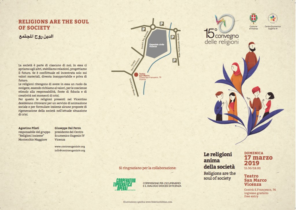 «Le religioni ritengono di avere un ruolo da svolgere nella società, essendo richiamo ai valori, stimolo alla responsabilità, fonte di fiducia e di creatività nei momenti di crisi», afferma monsignor Giuseppe Dal Ferro, delegato della Commissione ecumenismo e dialogo della diocesi di Vicenza. Per questo il “Convegno delle religioni”, organizzato annualmente dal Centro di riflessione ecumenica “Eugenio IV”, presieduto dallo stesso Dal Ferro, e dal gruppo “Religioni Insieme” di Montecchio Maggiore, nonché patrocinato dal Comune di Vicenza, quest’anno è intitolato “Le religioni anima della società”. «La società – spiega Agostino Pilati, responsabile gruppo «Religioni Insieme” -, per andare al di là della materialità umana, ha bisogno di un’anima, ha bisogno dello spirito. Uno spirito che è insito in tutte le religioni. Allo stesso modo il principio di Dio creatore ci unisce tutti». Per Caterina Soprana, consigliera comunale con delega alla Cultura, «In questo mondo totalmente disorientato, il ritorno alla spiritualità è approdo di salvezza». L’appuntamento è per domani al teatro San Marco (Contrà San Francesco – Vicenza), dalle 15.30 alle 18. Moderati dal giornalista Giandomenico Cortese, interverranno don Matteo Zorzanello (direttore Ufficio diocesano Pastorale sociale), Lenkhannat Abderrazzak (islam), Sudesh Kumar (raidassia), Navdeep Kaur (sikh), Antonio Simone Dovigo (Baha’i), e un esponente dell’Unione Induista Italiana. L’evento sarà animato da danze indiane e serbe. E si concluderà con la degustazione di un tè indiano. «È uno scambio di esperienze», commenta Pilati. «Prima di tutto ci dev’essere da parte di ciascuna persona un rispetto profondo nei confronti degli altri, l’idea acquisita e metabolizzata dell’importanza della convivenza, del vivere insieme – e noi è così che ci poniamo, con la massima apertura -, allora sì che i convegni, gli eventi, hanno un senso», conclude Pal Vinod, ravidassia.