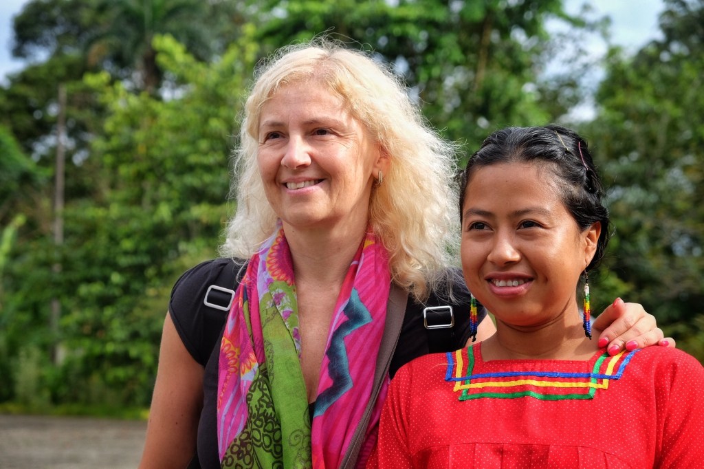 I due ragazzi risiedono in una delle casette gestite da Amupakin, associazione di donne ostetriche (parteras), fondata da Marìa Antonia Shiguango, e la cui presidente, Ofelia Salazar, è la madre di Gissela. «Si tratta di una sistemazione temporanea – dice Giacomo -, perché stiamo già costruendo la nostra casa». Al momento i due fidanzati supportano l’attività dell’associazione, che offre servizi di accompagnamento pro, durante e post parto per le donne della provincia, terapie basate sulle proprietà curative delle piante, e gestisce anche un Centro di turismo comunitario. Qui arrivano turisti, pazienti, studenti, volontari, e quanti sono incuriositi da questa saggezza millenaria. Proprio la sua passione per la botanica ha portato Giacomo fin qui, due anni fa. «Ho studiato Tecniche Erboristiche – un ramo della facoltà di Farmacia – a Bologna. Mi sono laureato nel 2012, poi ho intrapreso alcune esperienze lavorative e di volontariato, tra cui il Servizio civile in Ruanda. Ma mi ha sempre attratto molto il mondo delle piante. Pertanto, quando ho visto il bando Focsiv-Engim, che selezionava volontari per i Corpi Civili di Pace da coinvolgere in un progetto sui temi ambientali e di appoggio alle comunità indigene, da sviluppare in Ecuador, ho inoltrato la domanda. All’inizio, operavo a Tena poi, siccome mi affascinano le piante medicinali, ho conosciuto Amupakin, che da Engim è sostenuta».