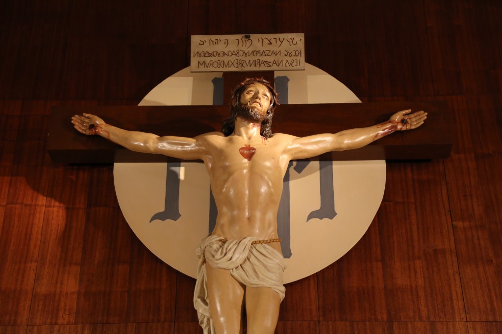 «La sua caratteristica principale è la serenità, la pace che trasmette. Come dice san Giovanni, “consegnò il suo spirito”, Gesù non muore costretto, muore per amore. Sotto ai suoi piedi c’è il mondo perché il messaggio dell’amore misericordioso è rivolto a tutti. Particolare piuttosto raro è la presenza dell’ostia alle spalle del Cristo. Madre Speranza amava l’Eucaristia, tanto che da bambina – diceva – “rubò” Gesù. Si intrufolò a Messa per ricevere il corpo di Gesù anni prima di aver ricevuto il sacramento della Comunione».