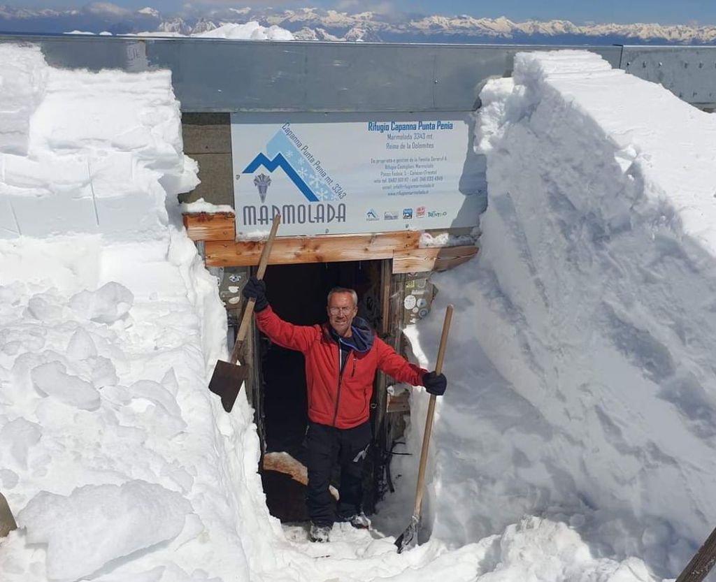 Nella foto di copertina: Carlo Budel a Capanna Punta Penia, Marmolada.