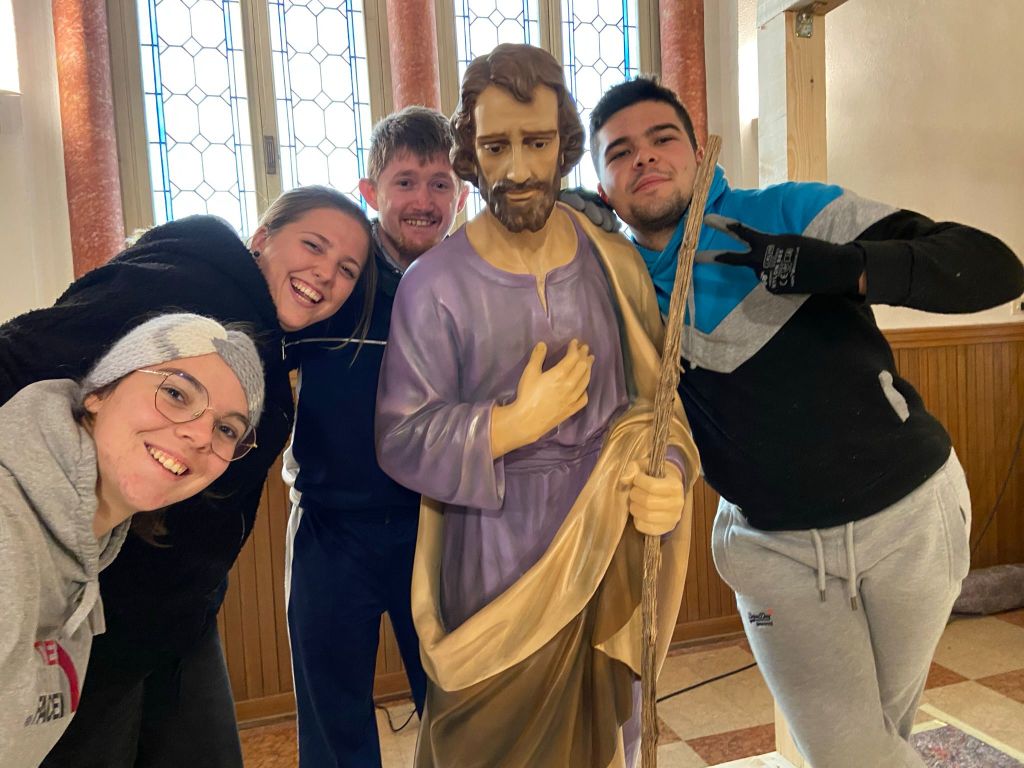 È Schivo di cognome e un pochino anche di fatto, Tommaso, del Gruppo di pastorale giovanile della parrocchia di San Bartolomeo di Gallio, sull’Altopiano dei Sette Comuni (provincia di Vicenza, diocesi di Padova). Tocca a lui – studente di Costruzioni all’Itis di Treviso – raccontare per primo com’è nato il presepe che sarà allestito, dal 10 dicembre al 10 gennaio 2022, nell’Aula Paolo VI, in Vaticano. Si fa un po’ desiderare, ma poi volentieri comincia a descrivere, partendo dall’elemento focale, la stalla, rifugio della Sacra Famiglia, realizzata a grandezza naturale con il legno degli alberi abbattuti dalla tempesta Vaia, per poi passare alle statue in vetroresina, anch’esse ad altezza naturale. Ci incontriamo nella parrocchiale di Gallio, dove il sogno è cominciato. Sebastiano, Patrik, Emanuele, Riccardo, Eugenio, Alessia, Giovanni, Silvia, Filippo, Benedetta, Giacomo, Michele, Giandomenico, Matteo, Sofia, Francesco, Davide sono gli artefici del manufatto. Hanno circa vent’anni, si frequentano dalle scuole medie, sono tutti impegnati in parrocchia e, negli anni, hanno condiviso numerose esperienze. Comprese quelle “di periferia” dalle quali è nata l’idea di scrivere al Governatorato della Santa Sede. «Il servizio prestato alla mensa della Caritas di Roma, ed ecco la ciotola del cibo – dice Benedetta -. Le stampelle di legno, invece, ci ricordano la nostra settimana di condivisione con persone con disabilità accolte all’Opera della Provvidenza Sant’Antonio a Sarmeola di Rubano (Padova); questi luoghi di dolore ci hanno segnato come gruppo, e ci siamo accorti di avere ricevuto più di quanto abbiamo dato».
