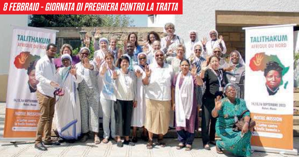 Ogni anno, dal 2015, Talitha Kum assieme ad altre organizzazioni partner promuove la Giornata Internazionale di preghiera e sensibilizzazione contro la tratta di esseri umani, che si celebra l’8 febbraio, memoria liturgica di santa Bakhita, la schiava sudanese divenuta suora canossiana e canonizzata da Giovanni Paolo II nel 2000. «È l’occasione per unirsi nella preghiera contro il crimine della tratta, e per la cura e la guarigione delle vittime. Anche papa Francesco ogni anno si unisce a noi. Tema di quest’anno è “Camminare nella dignità: ascoltare, sognare, agire”. Significa che il viaggio contro ogni sfruttamento lo dobbiamo fare tutti assieme, come pellegrini della dignità umana, con speranza, sogno e azione. A Roma arriveranno anche una cinquantina di giovani, in rappresentanza delle nostre organizzazioni partner». Suor Abby si pone come una madre amorevole nei confronti delle donne e ragazze che incontra. «Con loro si instaura un dialogo di cura, rispetto e fiducia, una relazione fraterna, alla pari, segnata dalla presenza dello Spirito. Il “cuore in ascolto” è la chiave per accompagnare le persone vulnerabili. Manifestiamo così l’amore di Dio, permettendo loro di rialzarsi da sole. La preghiera mi aiuta. Seguo la via di Gesù, una via di amore altruistico, per ottenere forza e coraggio nei momenti di difficoltà».