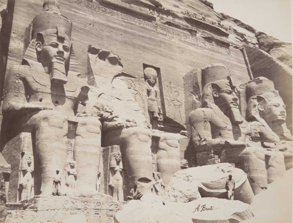 L’esposizione, che rimarrà aperta fino al 12 gennaio 2026, parte dalle fotografie realizzate a seguito dell’incontro dei fratelli Beato con il futuro cognato, il fotografo e incisore britannico James Robertson, a Costantinopoli, in Turchia, nei primi anni Cinquanta dell’Ottocento. Non poteva esserci luogo più adatto a ospitarla del Fortuny (sestiere di San Marco), il palazzo di Mariano, intellettuale, fotografo, eclettico artista nel campo dei velluti, fortemente influenzato nelle sue creazioni dai suoi viaggi, soprattutto dal viaggio in Egitto nel 1938 con la moglie Henriette Nigrin. E proprio l’Egitto è il protagonista della mostra. È la sezione più estesa, e copre un arco temporale che va dal 1860 al 1905. Le foto – che catturano paesaggi, architetture e siti archeologici – sono accompagnate da alcuni disegni, in un ideale percorso che, dal Cairo, risale il Nilo fino alla Nubia. Ci mostrano quegli antichi monumenti non come oggetti architettonici ideali e isolati, ma come parte del territorio che li accoglie. Lo straordinario archivio fotografico di Antonio Beato sulle grandi vestigia dell’antico Egitto, divenne molto utile anche agli archeologi coevi; era, infatti, quello un periodo storico in cui l’egittologia si stava costituendo come disciplina scientifica. Le immagini di Antonio, inoltre, raccolte in album pregiati o come singole stampe, entrarono nelle collezioni dell’élite europea, contribuendo a costruire un immaginario visivo di un mondo allora pressoché sconosciuto all’Occidente.