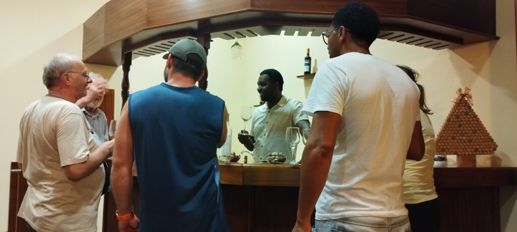 “I lavori di costruzione della cantina sono stati completati nel 2011. Nell’estate del 2012 è stata effettuata la prima vendemmia e, nella primavera del 2013, hanno visto la luce le prime bottiglie – racconta Giacomo Fasano, fratello di padre Ottavio, sommelier per passione da sessant’anni –. I vitigni utilizzati sono moscato di Alessandria, touriga nacional, che è il vino base per fare il Porto, tempranijo, di origine spagnola. Si producono due varietà di bianco e due di rosso. I bianchi sono il Santa Luzia (sei mesi di affinamento in acciaio per il vino ottenuto da muscatel bianco, chardonnay e moscato). Presenta aromi intensi e persistenti, con una fresca acidità e morbidezza. La Passadinha, che prende il nome da un uccello autoctono, offre caratteristiche di grande freschezza, mineralità vulcanica, contiene aromi di frutta tropicale, agrumi, fiori, miele, e ha un bel retrogusto sapido e amarognolo, con una struttura che varia da agile a robusta. I rossi sono il São Filipe, un vino brillante, pulito e vivace, di ottima qualità. L’impatto aromatico è intenso e persistente. Il tannino è presente, ma non aggressivo. Poi c’è il Pico do Fogo, il massimo dell’espressione dell’isola; viene imbottigliato dopo un breve passaggio in barrique. In generale, la gradazione è sui 13-14 gradi. La produzione al momento è molto bassa – continua Giacomo –. Sulle 30mila bottiglie all’anno, 15mila di bianco e 15mila di rosso. La struttura era stata attrezzata per produrre almeno dieci volte tanto. L’idea di mio fratello era far capire ai capoverdiani che dalla vendita della propria uva alla cantina si poteva ricavare un reddito. Al momento questo vino viene venduto non solo a Fogo, ma anche nelle altre isole. E siamo in trattativa con gli Stati Uniti perché la diaspora capoverdiana lì è numerosa. Il prezzo di una bottiglia va da 8 a 16 euro, non sufficienti per coprire il lavoro. Ma questo non voleva essere un progetto da cui trarre profitto, bensì un progetto di sviluppo per l’isola. Attualmente ci sono due dipendenti, a cui si aggiungono cinque-sei stagionali al momento della vendemmia. Mario Cardoso è il responsabile amministrativo di tutte le strutture realizzate da mio fratello, che sono di proprietà della Fondazione Padre Ottavio Fasano, gestita dai frati cappuccini capoverdiani”, conclude Giacomo, che lancia anche un appello: “Ci farebbe comodo un enologo disposto a trasferirsi per un periodo di formazione al personale”.