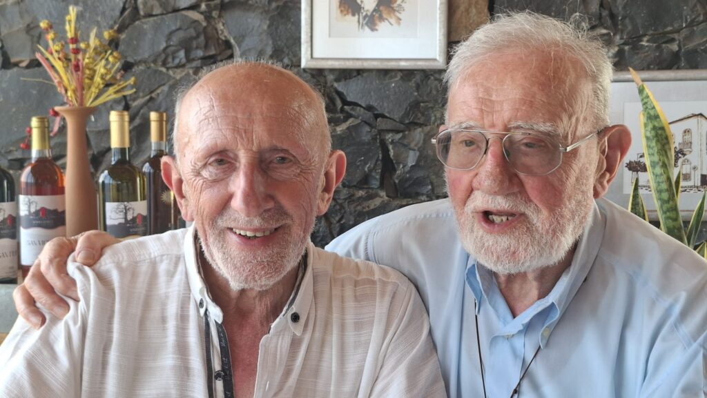 Padre Ottavio Fasano (a destra), con il fratello Giacomo. Sotto, l’esterno della cantina Barro (credits RG)