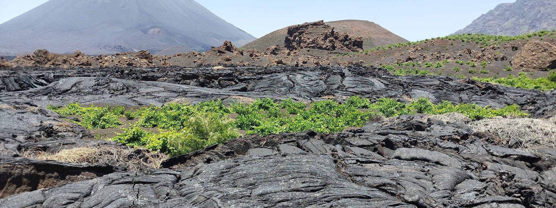 Capo Verde è indipendente dal Portogallo dal 1975; la capitale è Praia che si trova sull’isola di Santiago, A ovest di Santiago, c’è l’isola di Fogo o Djarfogo, scoperta nel 1460; ha una forma pressoché circolare e una superficie di 476 chilometri quadrati, quasi il 12% dell’intera superficie nazionale. Su quest’isola la coltivazione della vite, introdotta dai portoghesi nel sedicesimo secolo, ha trovato la sua massima espansione, grazie alle sue caratteristiche pedo-ambientali. Ma è solo dai primi anni del Novecento che la vite la fa da protagonista sull’isola a partire dalle terre alte del cratere vulcanico. Dagli anni Ottanta del Novecento la vitivinicoltura ha ricevuto supporto dalla cooperazione internazionale che ne ha permesso lo sviluppo. A Mosteiros, capoluogo dell’omonima contea nell’isola di Fogo, famosa per il caffè di qualità arabica, e nel paesino ai piedi del vulcano, Chã das Caldeiras, la forma di allevamento della vite è l’alberello, tipica delle regioni mediterranee, spesso con le singole vigne piantate in buche larghe e profonde fino a un metro nel terreno vulcanico, raggiungendo così il suolo fertile sottostante; il tronco basso e le poche branche (cioè i rami più vecchi e legnosi che supportano i tralci) di queste vigne sono l’ideale per resistere alla siccità e al vento, per proteggere gli acini, e ridurre l’evapotraspirazione. Qui, ai piedi del vulcano, che con la sua imponenza domina l’intera isola, si cammina sulle distese di lava. Il contesto è di una bellezza mozzafiato, tanto da essere diventato meta turistica di escursionisti che salgono a piedi fino al cratere.